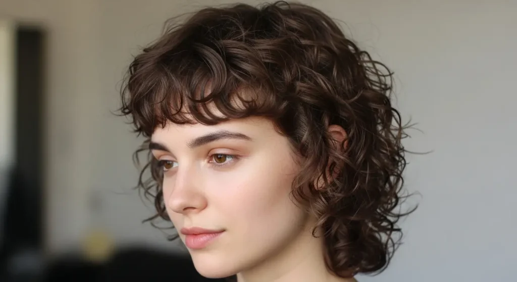 Curly hair gains bounce and definition through a masculine wolf cut, with layers reducing bulk and promoting natural curl flow. Crown layers add lift, preventing curls from collapsing or forming heavy shapes at the bottom. Applying curl cream and diffusing gently preserves texture and enhances volume. This creates a stylish, masculine appearance that balances ruggedness with effortless curl movement.