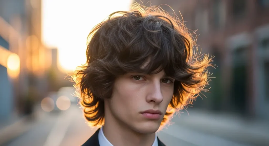 The messy wolf cut embraces imperfection, giving a relaxed, rugged, masculine vibe. Tousled layers create natural volume and texture. Dry shampoo or sea salt spray adds grip and enhances casual styling. This style is perfect for men who want effortless, stylish hair without over-managing it.